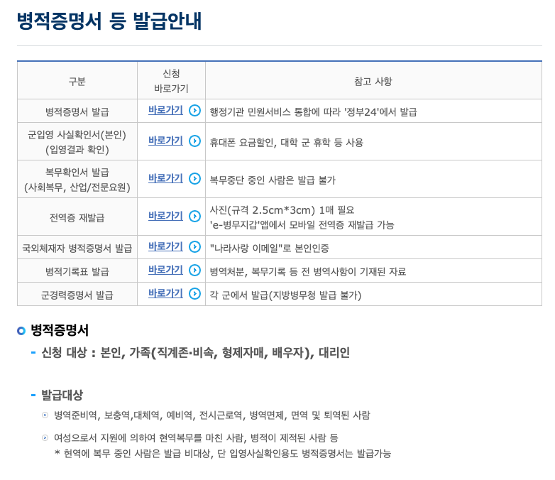 1. 병적증명서 온라인 발급 방법 (병무청)